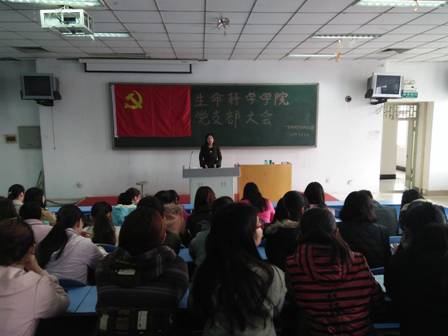 会议上,党支部书记夏领着大家学习了党章,鼓励同学们在学习、工作、生活中严格要求自己。争做合格党员。接下来29名学生发展对象依次上台表达自己的入党愿望,表明加入共产党的决心与态度,恳请党组织批准。接着部分党员上台汇报其在思想、学习、生活等方面的情况,请党组织进行监督。经过民主评议,公开投票,同意接收5名同学为中共预备党员。最后,党总支副书记周红杰强调,大家要严于律己,努力上进,积极向党组织靠拢,争取早日成为一名优秀的共产党员。