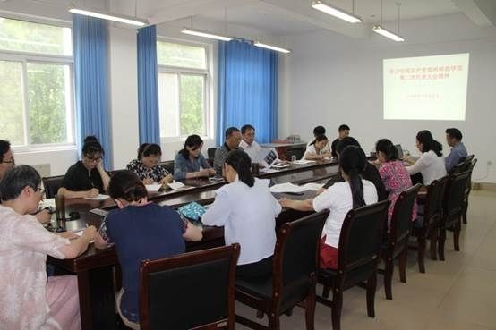 5月29日下午3:00,我院党总支在崇智楼301会议室院学习中国共产党郑州师范学院第二次代表大会精神,学习由党总支书记李坤陶主持,全体教职工参加学习。