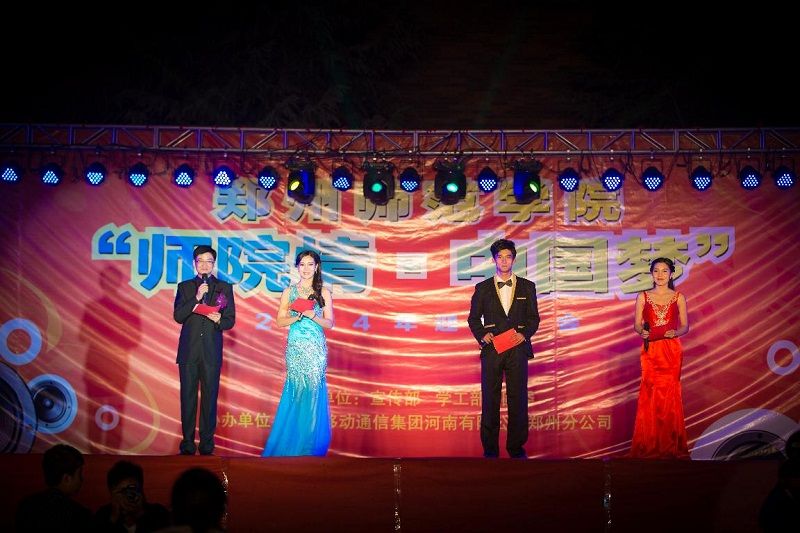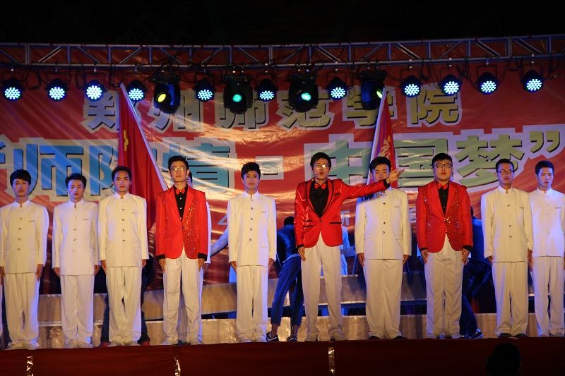 10月14日晚,郑州师范学院“师院情,中国梦”迎新晚会在音乐广场正式拉开帷幕。出席此次晚会的领导有:郑州师范学院党委书记于向英,校长赵健,党委副书记、工会主席弓民,副校长王北生,副校长张建航,副校长孔青,中科院研究员,博士生导师马润林。此外,各行政部门负责人和各学院党总书记院长、副书记等也到场观看晚会。近6000名师生观看了此次迎新晚会。