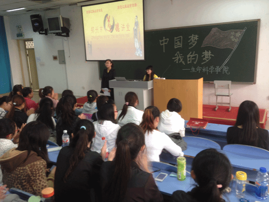 10月21日,生命科学学院于四阶四举行以“中国梦,我的梦”为主题的道德讲堂活动。此次活动由我院13级石雅洁同学主持。党支部书记周红杰老师及辅导员潘晓嫚老师出席了此次活动。