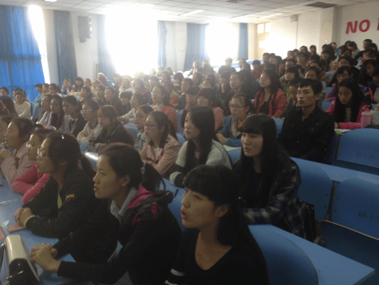 此次道德讲堂活动以“身边人讲身边事,身边人讲自己事,身边事教身边人”为主要宣讲形式开展。活动分为“自我反省”、“歌唱”、“学模范”、“诵经典”、“读感悟”、“向德鞠躬”、“送吉祥卡”、“一堂一善事”等八个环节。在“学模范”环节,我院13级刘丽媛同学分享了暑期创业的“追梦”经历,将其自身梦想与中国梦相结合的自强务实精神感染着在场的每一位同学。会议最后,潘老师作了总结讲话对同学们提出了殷切希望,她鼓励大家在学习、生活中从点滴做起,努力成为道德的传播者与践行者。活动现场气氛温馨和谐。