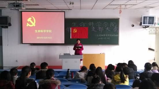 12月10日中午,生命科学学院在四阶四教室召开学生党支部大会。生命科学学院党总支副书记周红杰、学生支部书记夏霄鹤、辅导员江婧、郑钧屏、潘晓嫚等老师出席了会议,6名中共预备党员及62名共产党员发展对象参加了会议。