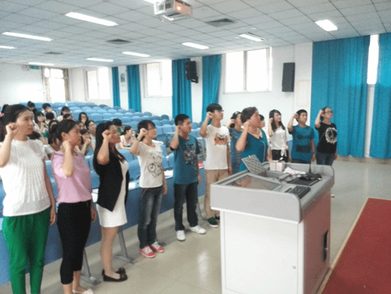 11名预备党员依次上台演讲,汇报在预备期间思想、学习、生活等方面的状况,请党组织进行核查。接着,67名共产党员发展对象依次上台表达自己的入党志愿,表明加入共产党的信心与决心,请党组织批准。经过民主评议,公开投票,11名中共预备党员全票通过,正式转为中共共产党员,周书记带领11名中共预备党员宣读入党誓词。之后,她发表了热情洋溢的讲话,鼓励大家严于律己,努力上进,积极向党组织靠拢,争取早日成为一名优秀的共产党员。