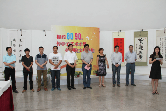 6月5日下午,由学校宣传部、团委、驻马店驿城区团委主办,生命科学学院、美术学院承办的“相约80、90,青年艺术教育公益行”活动在学校美术学院展厅隆重举行。本次笔会旨在传播中华书法文化,加强大学生书法艺术教育。学校党委副书记弓民出席了活动。活动邀请了驻马店市青年书法协会主席聂政等一行80后中国书法协会会员、学校相关部门领导及书法爱好师生。开笔仪式由学校团委书记王珊主持。