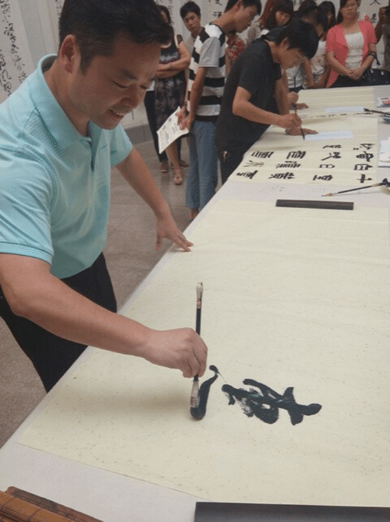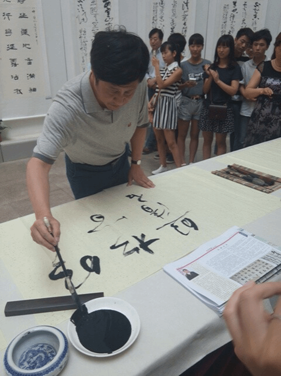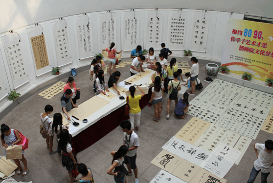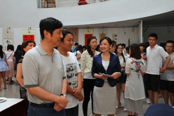接着,嘉宾师生参观了现场展出的书法作品包含篆、草、行、隶、楷等书体,各富韵味,各呈妙趣,在独特的造型和用墨中展现着青年书法家对书法艺术的理解和表现。书家们对各自的作品进行了介绍和讲解,对学生的作品进行了点评和指导。最后,青年书法家现场挥毫泼墨,书法创作。有的清逸秀美,有的苍浑古朴,展示了当代80后书法家的笔墨技法、人文素养和思想境界。师生也纷纷执笔挥墨、互动交流。现场气氛热烈。