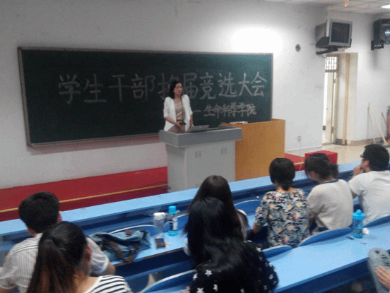 9月29日晚,生命科学学院在四阶四教室召开学生干部换届选举大会。团支部书记夏霄鹤老师出席了会议,2012级学生会各部门部长及2013级全体学生参加了会议。