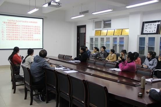 11月20日下午2:30,我院在崇智楼301会议室召开政治学习会议,学习《习近平新闻思想讲义》,全体教师参加会议,会议由党总支书记李坤陶主持。