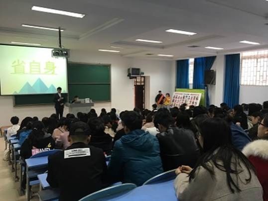 10月 29日下午,由我院与特殊教育学院联合举办的道德讲堂在崇智楼4阶1教室举行。我院教师徐宁、特殊教育学院教师钱学刚、陈岩以及两学院近200名新生参加此次活动。