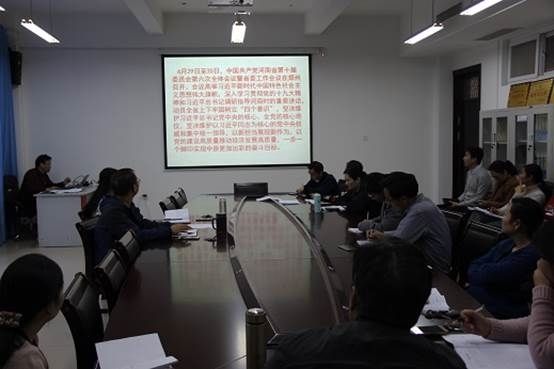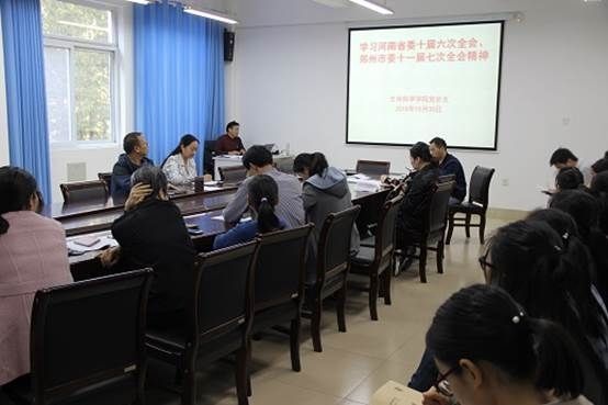 10月30日下午,我院全体教师在崇智楼301会议室召开会议,学习《河南省委十届六次全会》和《郑州市委十一届七次全会》精神,会议由党总支书记李坤陶主持。