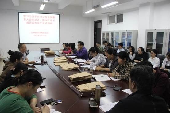 9月18日下午2:30,我院全体教职工在崇智楼301会议室召开会议,学习习近平总书记在全国教育大会的讲话,会议由党总支书记李坤陶主持。