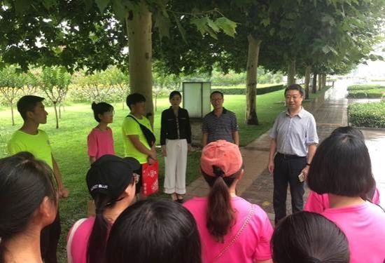 7月13日上午,副校长孔青在我院党总支书记李坤陶、副书记夏霄鹤及辅导员姚谦的陪同下,到郑州市植物园慰问我院暑期社会实践的师生。
