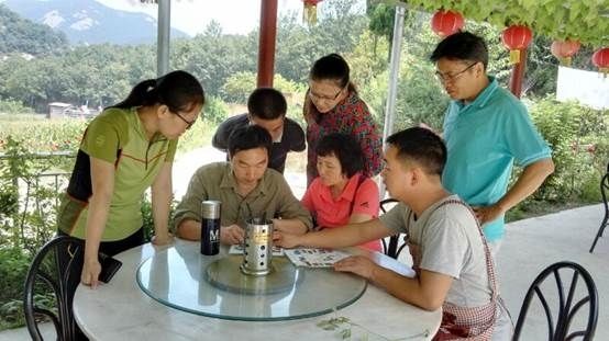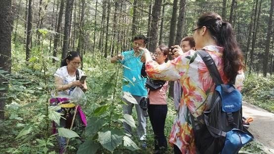 经过乘车三个多小时的路途,到达住处,队员们不顾劳顿,马上向农家乐老板了解周边环境,讨论考察线路。在随后两天的考察中,队员们不畏山高、路难、崖险、途远,克服了种种困难,仔细搜寻各种动植物,勘察路线。途中,汪琛颖教授找到了多处苔藓植物,袁秀云教授、范春丽、张耀广老师忘情于“植物王国”中辨认、拍照、采集标本,张玮博士举起望远镜观察着鸟类,雷志华老师沉浸于他的昆虫世界中……即使回到了驻地,袁秀云教授还在与汪琛颖教授、范春丽老师讨论、辨认植物,并且密密麻麻地记满了小本本。最后,雷志华老师仔细地询问农家乐的食宿标准、周边环境、活动场地,以及学生实习的特殊要求等,农家乐老板一一作答。