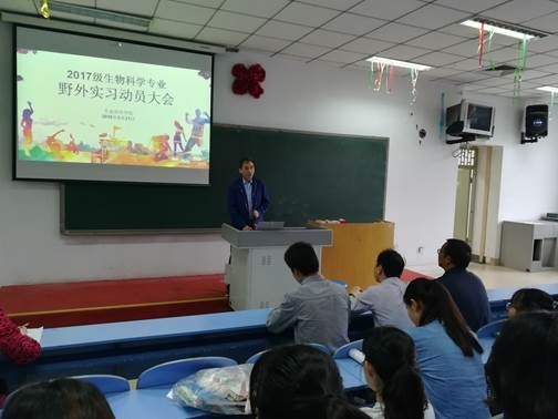 5月21日上午8:30,我院2017级生物科学专业野外实习动员大会在崇智楼四阶四教室召开。党总支书记李坤陶、副书记夏霄鹤、副院长杨宗渠以及部分教师出席此次大会。大会由生物科学系主任汪琛颖老师主持,生物科学系2017级全体学生参加大会。