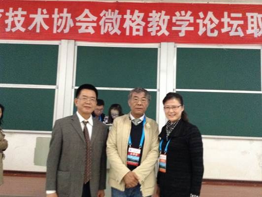 我院教师与中国教育技术协会微格教学专业委员会理事长孟宪凯教授(中) 、秘书长杨华教授(右)合影