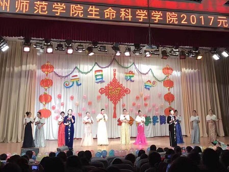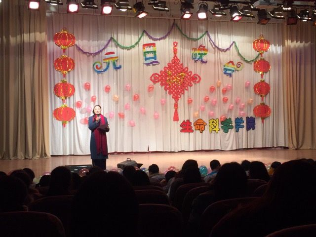 晚会在动感的舞曲中拉开序幕。院长杨玉珍致辞,对学院过去一年取得的成绩给予充分肯定和高度评价,鼓励生命科学学院全体师生再接再励,勇创佳绩。党总支书记周红杰发表了热情洋溢的讲话,表达了对学生的殷切希望和新年祝福。院长杨玉珍,党总支副书记周红杰等十二位老师演唱的《女人花》,将晚会气氛推向了高潮,台上台下热烈互动。舞蹈《蓝色海风》动感十足,《worth it》节奏强烈,小品《网瘾少年》反应了大学生沉迷游戏,荒废学业的校园问题,小品《大学生活》描写了宿舍里发生的感人一幕,舞蹈《大梦想家》欢快纷呈,赢得了现场观众的热烈掌声和阵阵喝彩声。晚会在歌曲《难忘今宵》谢下帷幕。最后,师生演员合影留念,记下这难忘的瞬间。