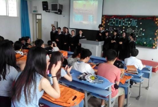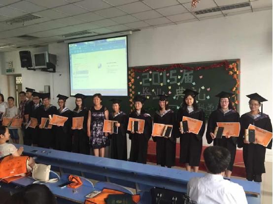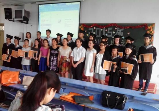 毕业典礼随着国歌缓缓拉开序幕。毕业生代表、原学生会主席赵文杰带领大家通过ppt回顾了大学四年的学习生活,表达了对老师们的培育之恩和对母校的不舍情感。大二在校生代表石雅洁表达了对学长学姐们的深深祝福。院长杨玉珍、院党总支副书记周红杰、教师代表曲金柱分别作了语重心长的讲话。嘱咐毕业生们奋发有为,成为有用之才,并提出了殷切希望。祝愿同学们收获快乐、圆满的人生。之后,进行了神圣而又庄严的学位授予仪式,毕业生代表一一上台,接受杨院长的学位授予。随后,周书记为优秀毕业生颁奖。典礼在师生们共唱的《再见》歌声中圆满结束。典礼结束后师生合影留念。